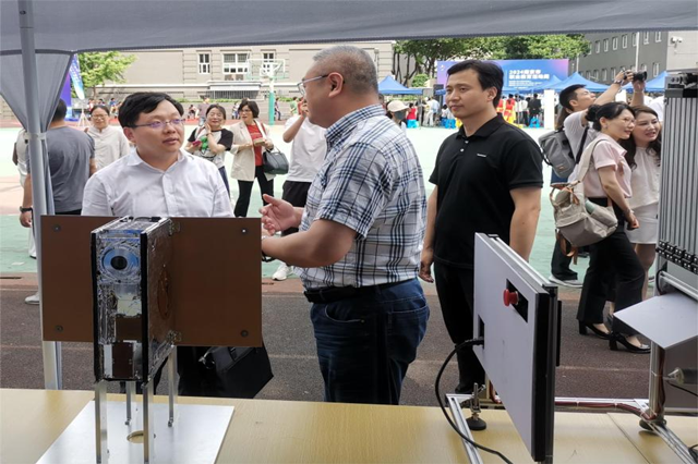 刁爱军副校长热情洋溢的与领导嘉宾介绍了“南京号”暨中国青少年科普卫星(八一08星)的结构功能、研制过程、发射情况以及卫星测控的计划安排。