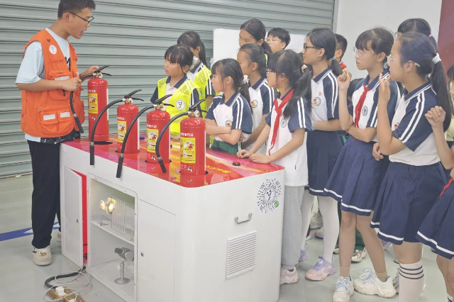 在安全应急教育体验中心,保卫处尹小雨老师带领孩子们体验了消防场景模拟灭火、VR地震体验舱、VR模拟逃生等项目。一名高淳区砖墙中心小学的学生分享了体验感受:在体验模拟灭火中,我们在身临其境中学会了灭火器的使用方法,我们仿佛就在火灾现场进行灭火作业,让我们增长了应急救援的知识和技能。
