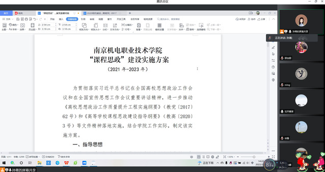 为贯彻落实习近平总书记在全国高校思想政治工作会议和在全国宣传思想工作会议重要讲话精神,进一步推动《高校思想政治工作质量提升工程实施纲要》和《高等学校课程思政建设指导纲要》等文件精神落地实施,结合学院工作实际,学院制定了《球友会在线“课程思政”建设实施方案》。2022年3月22日下午,机械设计与制造教研室在腾讯会议线上平台对学院的文件进行了学习,并对本专业的所有课程融入思政进行了研讨,会议由专业负责人黄晓萍主持。