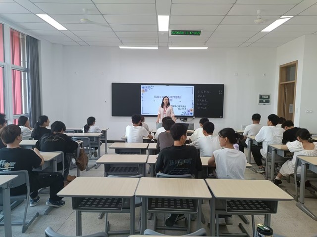 为了进一步落实机械工程系心理气象站的日常管理工作,加快润心行动的步伐,同时调动同学们参与到日常班级心理相关工作中来的积极性和主动性,为表彰在2022级心理委员培训中表现优异的同学,机械工程系心理气象站于2023年6月8日,在思学楼108开展换届选举大会暨结业仪式授予大会,机械工程系心理辅导员王潇然老师以及2022级全体心理委员出席了本次大会。
