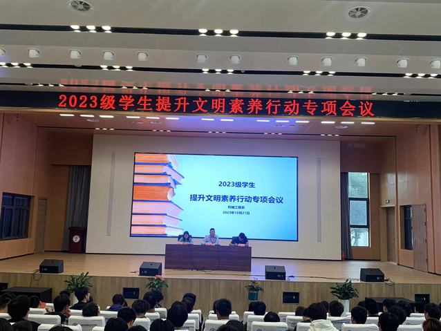 10月27日中午,机械工程系在乐学楼101召开2023级学生提升文明素养行动专项会议,机械工程系党支部副书记李杰、就业干事顾航、团总支书记吴婧佳、23级全体辅导员以及所带学生参加会议。本次会议由吴婧佳主持。