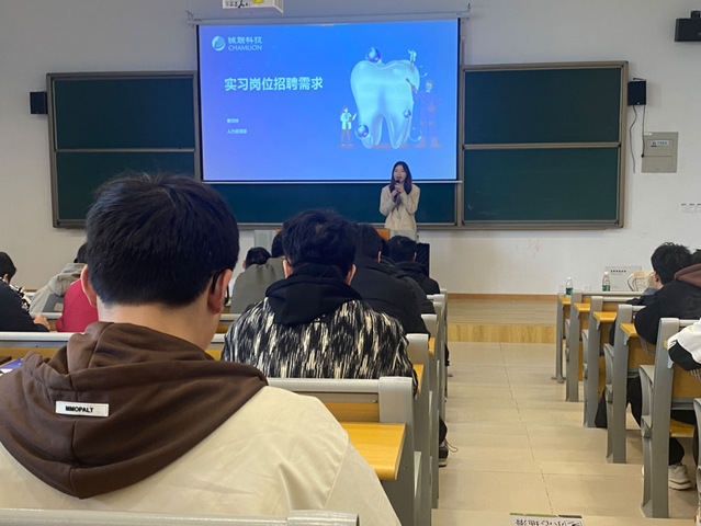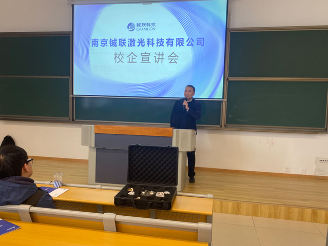 南京铖联激光科技有限公司总经理张长桃介绍企业文化。该公司坐落于中国(南京)软件谷创业创新城,是南京航空航天大学增材制造研究所孵化成立的国家级高新技术企业,专注于口腔齿科全流程数字化,提供一站式齿科3D打印数字化解决方案,引领行业数字化转型升级。经过张长桃的详细介绍,同学们听得热血沸腾,既学习到了现代先进制造技术的发展和应用,也极大激发了学生的就业热情。