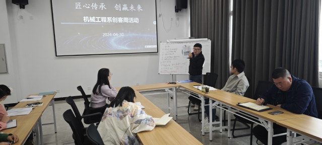 为了更好地落实两个突围战略,把创客周活动办的出新出彩。2024年4月30日下午1:30机械工程系全体教职工在笃行楼401举行第二次创客周活动——创客项目原型制作进展汇报。机械工程系主任毛奇、党支部副书记李杰、副主任黄晓萍和全体教师参加活动。