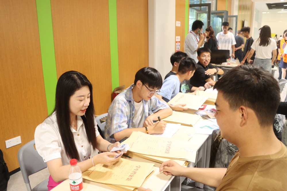 报到现场,全体新生辅导员、专任教师、迎新助理们细心办理入学手续,耐心解答疑惑,确保每位新生顺利入学。报到台也是新生了解专业、规划未来的窗口,助力梦想启航。资助政策耐心解答,点亮学生求学之路。