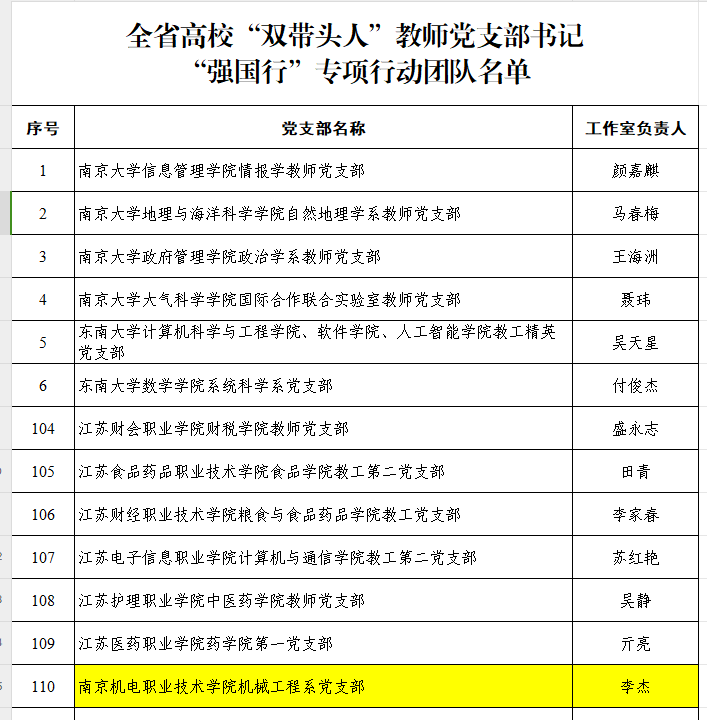 喜报:机械系党支部入选全省高校“双带头人” 教师党支部书记“强国行”专项行动团队