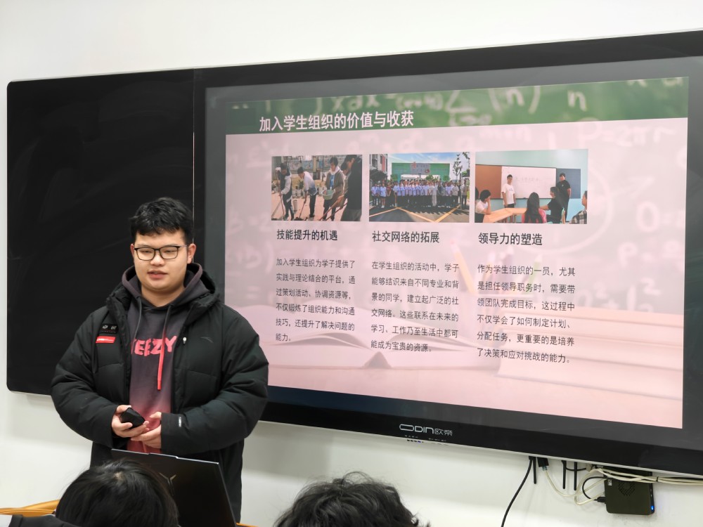 在分享会上,王晨旭首先分享了学习生活经验。他强调设定明确学习目标的重要性,这是时间管理的基础,能帮助规划每日学习任务。同时,掌握主动学习、分散练习、定期复习等高效学习方法,可显著提升学习成果。在时间分配上,制定详细计划,区分工作与休息时间,能避免时间浪费。面对考试,合理复习计划、积极课堂参与以及应对压力的技巧,都是取得好成绩的关键。