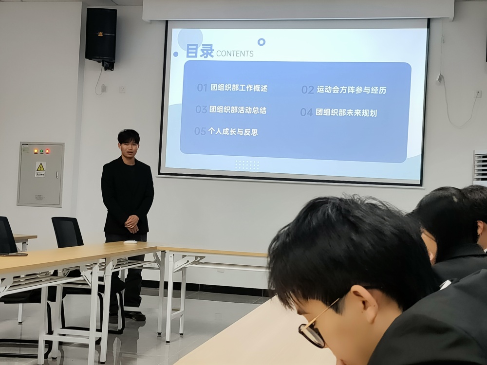 王晨歌首先发表开场致辞,她回顾了过去一年团委在思想引领、组织建设、校园文化活动以及社会实践、志愿服务等方面取得的显著成就,并对所有成员的辛勤付出表示衷心感谢。紧接着,大会进入述职环节。书记团成员和各部门负责人逐一上台,详细汇报了年度工作成果、面临的挑战及改进措施。述职内容全面而深入,既展示了部门特色,也反映了团委整体工作的有序推进。随后,大一干事们也逐一上台述职,他们虽然加入团委只有一个学期,但在各自岗位上展现出了不凡的潜力与热情。从策划组织小型活动到参与大型项目的执行,从与团队成员的协作到服务学生的实践,他们的成长与贡献得到了与会人员的广泛认可。