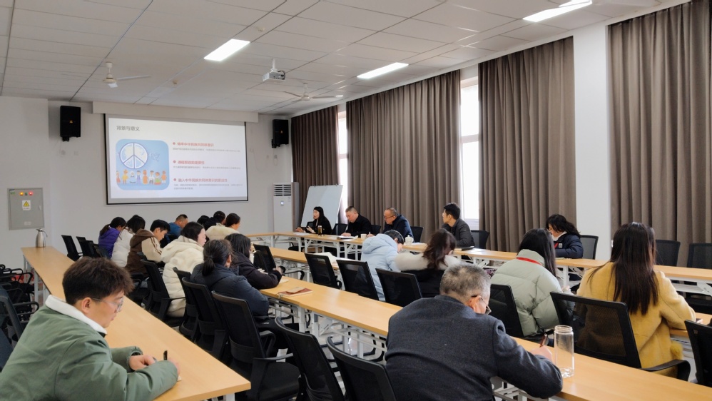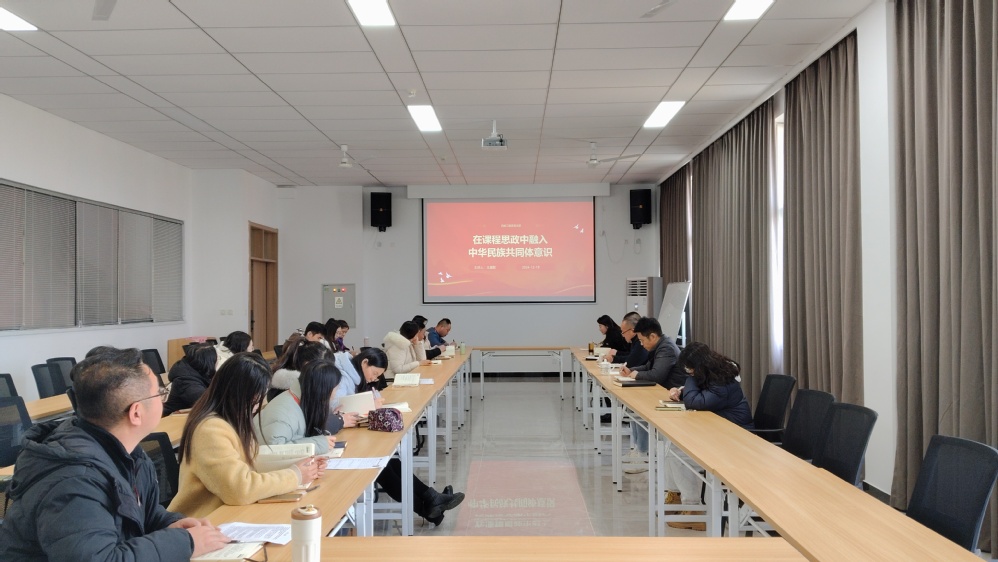 20241219日下午14:00,机械工程系党支部在笃行楼401会议室召开主题为在课程思政中融入中华民族共同体意识的专题学习会议,本次党课由支部青年统战委员、系团委书记王晨歌主讲,支部联络点校领导赵学洪列席旁听,全体党员参加。