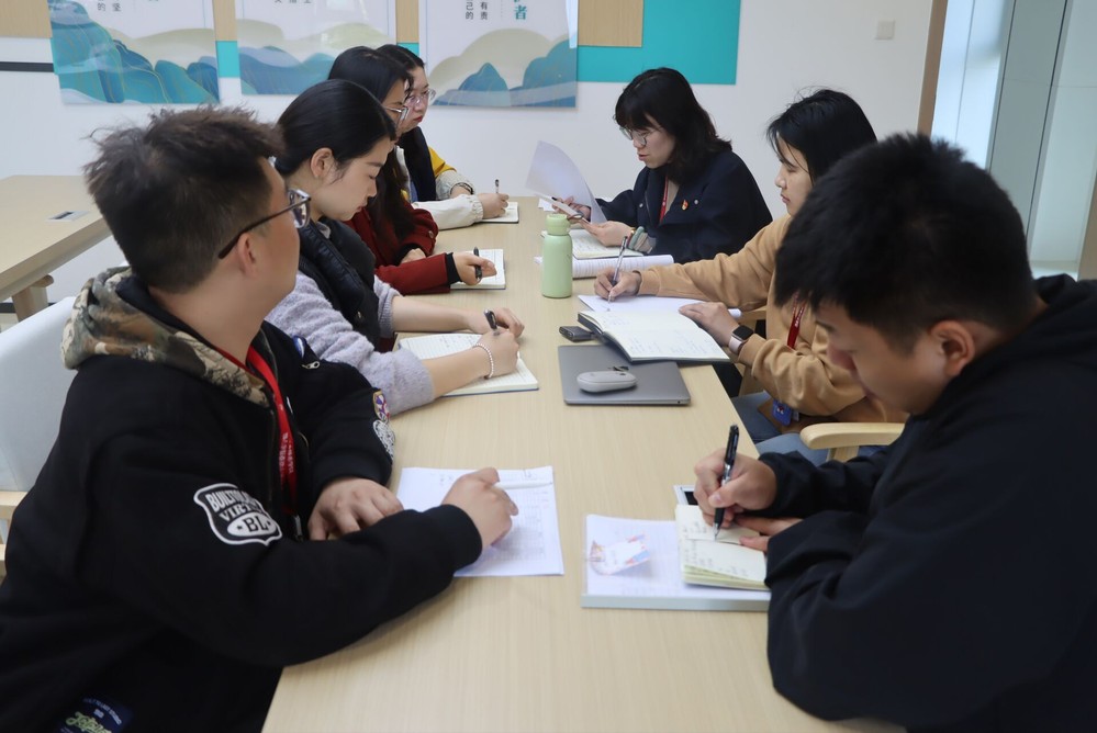会议的第一项议程是学习《球友会在线学业预警工作管理办法》。胡枫带领全体辅导员认真学习了该办法的具体内容,包括学业预警的触发条件、处理流程、帮扶措施等。她强调,学业预警是保障学生学业顺利完成的重要机制,针对红色预警级别学生要全部进行面谈。辅导员要密切关注学生的学习动态,及时发现并解决学业问题,确保每位学生都能顺利完成学业。随后,会议进入工作和个人规划研讨环节。辅导员们围绕如何提升结合辅导员工作和个人科研规划展开讨论。大家纷纷表示,将结合本专业特点和学生实际需求,创新工作方法,积极开展科研项目申报。