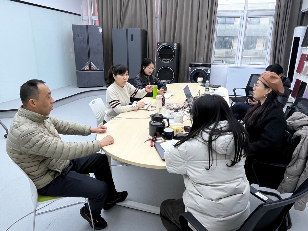 研讨会上,周老师首先传达了《江苏高校人工智能赋能专业建设行动方案》的核心精神,强调要加快人工智能与高等教育的深度融合,推动课程教材、培养方式、实习实践等多方面的改革创新。随后,与会教师围绕这一主题展开了热烈讨论。卢老师表示,人工智能技术的发展为工业设计专业带来了前所未有的机遇,通过引入人工智能技术,可以大幅提升教学效率和质量。例如,利用AI技术进行智能备课、个性化学习推荐以及智能作业批改等,都能够有效减轻教师负担,同时满足学生的个性化学习需求。韦老师则分享了将人工智能应用于工业设计实践教学中的经验和体会,认为AI技术不仅能够帮助学生更好地理解设计原理和方法,还能通过虚拟仿真等手段,降低实验成本,提高实验安全性。