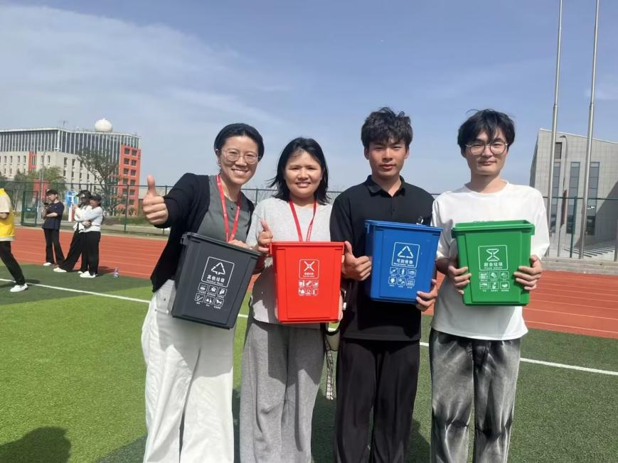 第三个项目是争分夺秒——垃圾分类赛,由机械工程系党支部书记胡枫、辅导员原智慧老师等四名师生参加,强化了环保意识与快速决策能力。