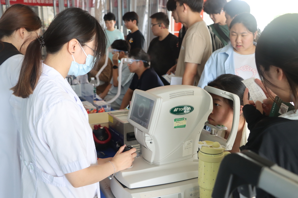 活动现场,南京爱尔古柏医院的专业医疗团队为师生带来全方位的眼科健康服务。义诊区域内,眼科医生们借助先进的检查设备,为师生们进行视力检测、眼底检查等多项眼科检查,耐心解答大家关于近视防控、眼部疾病预防等方面的疑问,并给予个性化的护眼建议。眼镜清洗服务点前,师生们有序排队,将自己的眼镜交给工作人员。专业的清洗设备配合细致的操作,让眼镜焕然一新。干眼雾化体验区更是备受欢迎,不少长期使用电子设备、眼睛容易疲劳干涩的师生,通过雾化治疗,缓解了眼部不适,直呼“眼睛清爽多了”。