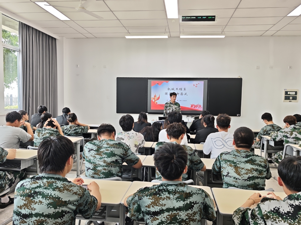 为充实团委工作队伍,激发组织活力,9月23日,机械工程系团委在思学楼103教室顺利开展25级新生招新面试。系团委书记王晨歌担任主考官,24级团委骨干共同参与评审,50余名25级新生怀揣热情与期待,展现自我风采,角逐团委干事岗位。