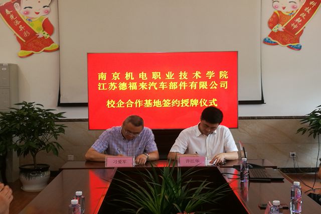 随后,学院一行5人在泰兴市高新技术开发区管委会副主任邱明波的带领下分别前往苏德福来汽车部件有限公司、江苏佳佩环保机械设备有限公司进行校企合作专题对接活动。学院领导与企业领导就人才培养、项目合作等校企合作事宜进行了深入的交流,初步达成合作意向。学院分别与两家公司签订《就业创业实习实践基地建设协议》,并向两家公司授予“球友会在线大学生就业创业实习实训基地”铜牌。