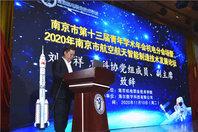 开幕式上,刁爱军副院长向参与论坛主题分享的学者及与会嘉宾表示诚挚的感谢与热烈的欢迎。他介绍,我院2020年携手中国航天,共建“新时代航天工匠人才联合培养基地”,设立“大国工匠工作站”及“王曙群航天空间机构装配工作室”。未来学院将打造智能控制技术应用、现代制造技术、新时代航天工匠人才联合培养基地、通用航空飞行营地等10个产教融合实训平台,助力南京智能制造及通航产业发展。