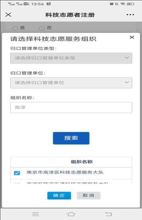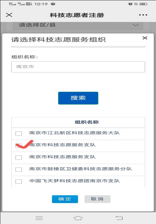 输入个人相关信息,所在区域选择“南京市高淳区”,在加入科技志愿组织填南京机电搜索,选择“南京职业技术学院科技志愿服务支队”;可以多项选择,选择“南京职业技术学院科技志愿服务支队”后,再输入高淳搜索,选择加入“南京市高淳区科技志愿服务大队”,再输入南京市搜索,选择 “南京市科技志愿服务支队”同时加入三支志愿者队伍;选择“服务类别”和“服务领域或行业”时,可以根据自己的情况,多项选择。完毕之后点击“下一步”,注册成功。如下图所示: