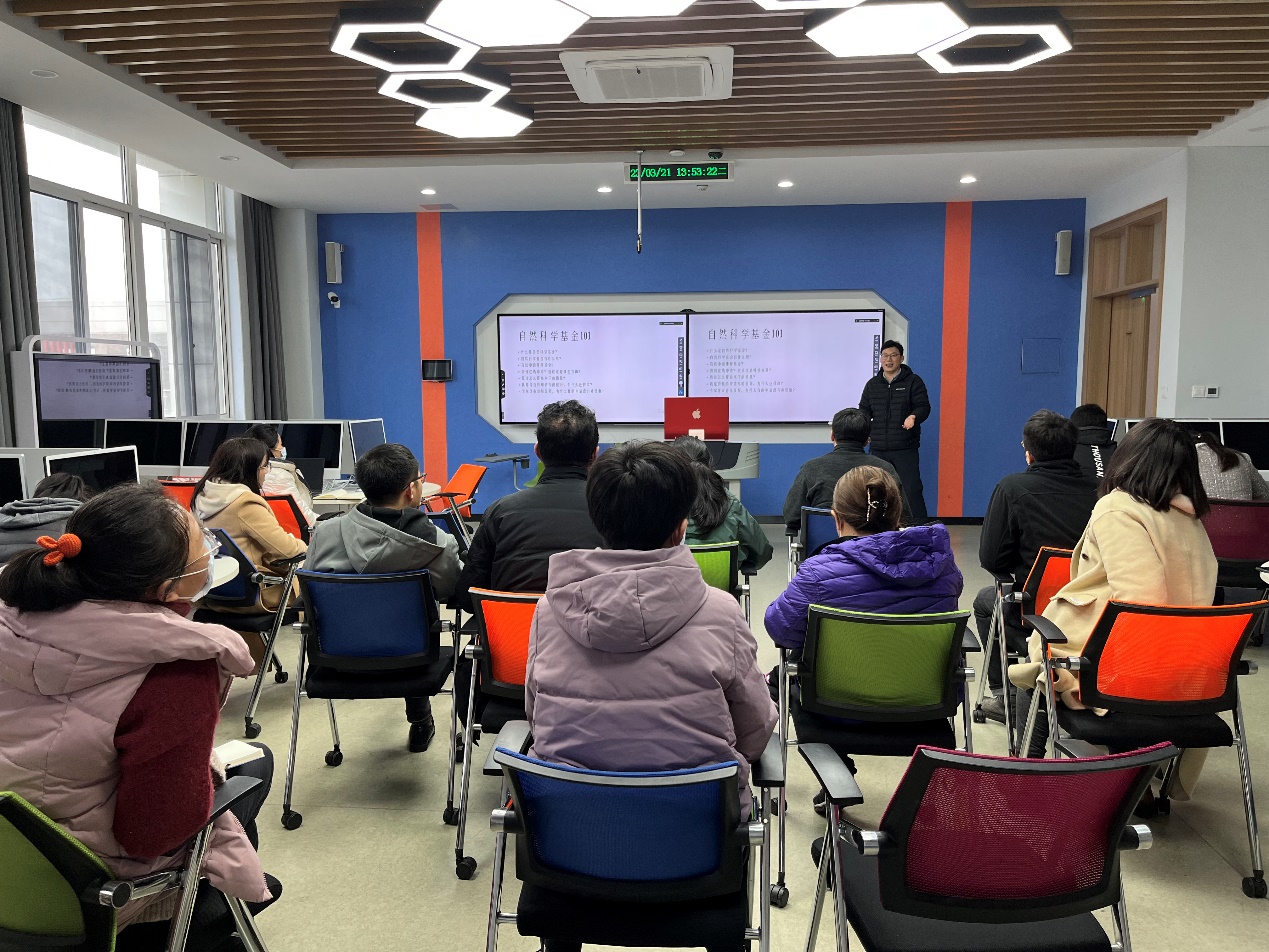 为提升高职院校教师科学研究能力,提高科研项目申报书撰写质量, 3月21日下午,由九三学社南京大学委员会和球友会在线共同主办的“社校互动 普职融通”教师科研能力培训活动在球友会在线博学楼408智慧教室举行。活动采用线上+线下相结合的方式,九三学社南京大学委员会副主委、南京大学天文与空间科学学院教授陈鹏飞线上交流,南京大学天文与空间科学学院副教授徐晓杰作了主题讲座和项目辅导。拟申报2023年度江苏省高等学校基础科学(自然科学)研究面上项目和其他相关纵向科研项目的教师参加了本次培训。