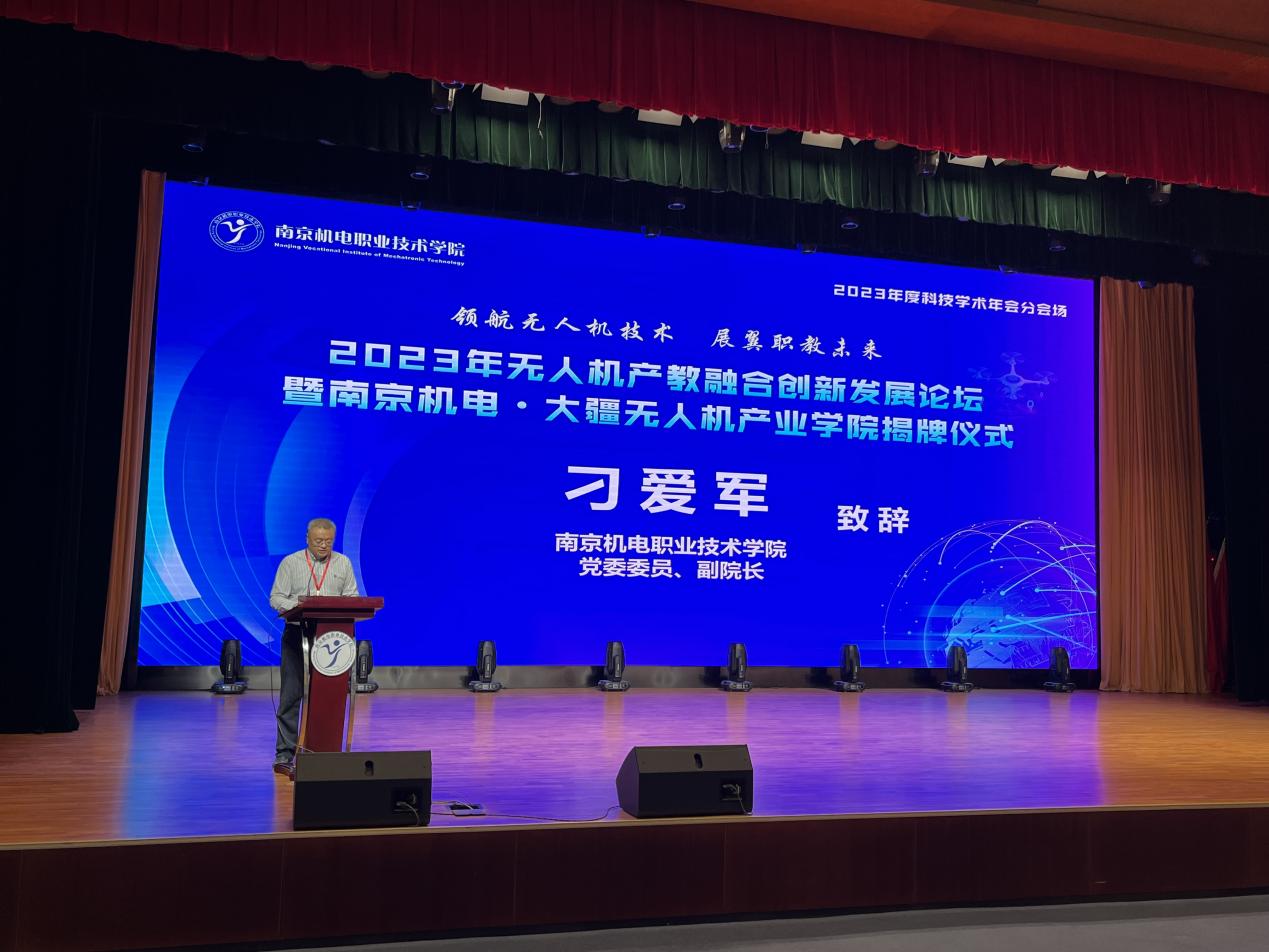 产教融合,职业教育助推无人机“飞”出产业发展新高度。致辞中,刁爱军介绍了南京机电学院打造航空航天特色学校、建设无人机应用技术专业方面的基本情况。2021年,学校与深圳市大疆创新科技有限公司签订共建“南京机电-大疆无人机产业学院”校企合作框架协议,构建“产、学、 研、创、用”于一体,互补、互利、互动、多赢的行、校、企协同育人平台。刁爱军表示,未来学校与深圳大疆创新科技有限公司将共同探索示范性全路径培养模式,打造以人才培养、技能竞赛、教师实践、技术培训、社会服务功能于一体的"产学研创”现代服务产业学院。