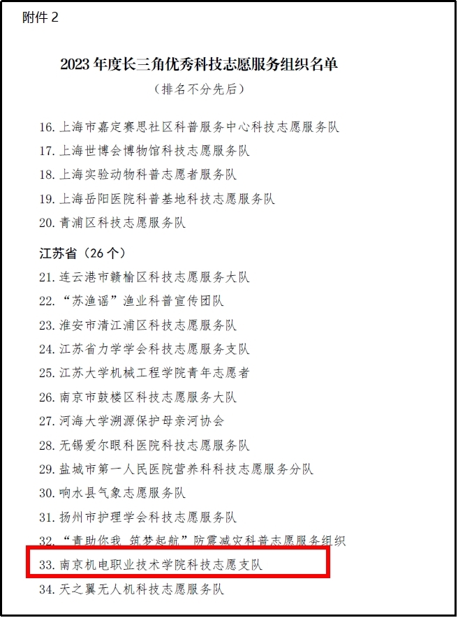 近日,我校科技志愿支队在2023年度长三角科技志愿服务先进典型评选活动中被授予“2023年度长三角优秀科技志愿服务组织”称号。