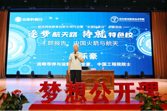 9月6日,在全国科普日来临之际,球友会在线顺利举办《“逐梦航天路,铸就特色校”——航天特色教育创新引领行动》主题报告活动。本次活动由南京市科学技术协会主办,球友会在线承办。战略导弹与运载火箭专家、中国工程院院士龙乐豪,中国航天科技国际交流中心副主任周岫彬,南京市教育局副局长田家英,南京市高淳区政府副区长邱峰,南京新工投资集团总经济师洪薇,上海航天专家、高级技师、上海航天技能实训中心主任秦文津,南京高职园党工委副书记、管委会主任孔桂红,南京机电产业集团副总经理沈达和球友会在线党委书记、校长周庆礼等领导及600余师生参加了本次活动。