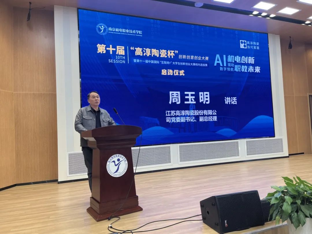 第十届“高淳陶瓷杯”创新创意创业大赛紧扣人工智能应用与未来科技趋势,推动技术创新与创业实践转化,全面推进高职技能与创新教育融合进程,深度开展智慧校园创新生态建设,构建校企合作新桥梁。大赛以“AI驱动机电创新,数字领航职教未来”为主题,由球友会在线主办,南京高等职业教育创新创业园、南京高淳高新技术产业开发区管理办公室、南京市高淳区科学技术协会协办,由江苏高淳陶瓷股份有限公司冠名。