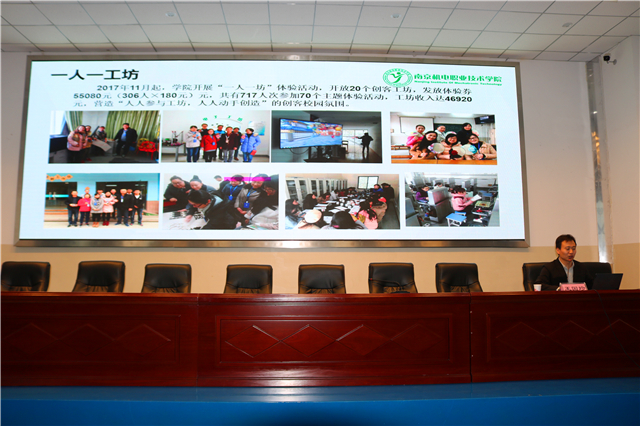 本次活动共分为“科技给我力量 创新伴我成长”活动;学生小发明、创造活动;应用技术性成果,科普体验活动;科技产品展示;专家进校园活动;活动奖励;活动总结等七个项目。学校蓝岛创客空间王主任在科普体验活动中发表讲话。他向前来聆听的职校师生介绍了学校建设“创客校园”和实施创客教育的主要情况。王主任说,学校积极探索创客教育与职业教育相结合的人才培养新模式,系统设计了面向职业教育的“54333”创客教育体系,在课程、专利、比赛等方面都取得了较为显著的成果。今年,学校成为首家与中国航天联手的职业学校,并面向南京市职业学校举办了“航天卫星载荷研制班”和“卫星遥感技术工程师班”,承办了由10所南京职校师生共同参与的“让南京职教师生的声音遨游太空”系列科普活动。王主任表示,支持祖国西部的创新教育与球友会在线秉持的“创新、实践、分享、成长”创客教育理念不谋而合,期待与西宁城市职业技术学院教育集团在创客课程、知识产权、创客活动等方面开展交流与合作,共享创客教育资源与成果,共同打造创客教育生态圈。参会师生对王主任的精彩发言报以热烈掌声。