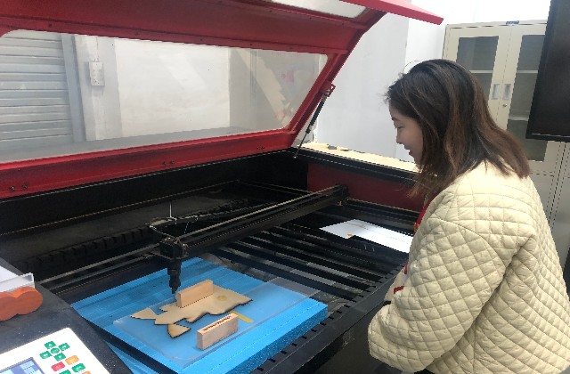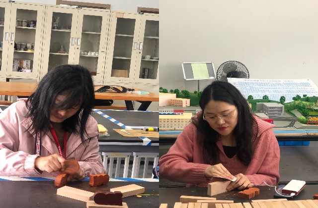 本次活动由学校党委主办,蓝岛创客空间承办。庆祝中国共产党成立100周年摆件由红木构成,镶嵌党徽。制作过程首先要用磨砂纸对底座和主体进行打磨。