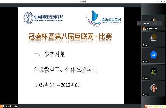 为深入推进大众创业万众创新,推动高等职业教育高质量发展,蓝岛创客空间创新教研室于4月12日举行冠盛杯暨第八届互联网+大赛研讨会。会议由蓝岛创客空间候俊老师主持,蓝岛创客空间王国珍主任及全体创新教研室教师参加。