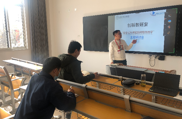 12月6日,蓝岛创客空间创新教研室在思学楼106举行“在合班大课堂如何有效教学”主题研讨会。本次会议由蓝岛创客空间创新教研室黄克瑶老师主持,蓝岛创客空间主任王国珍及全体创新教研室教师通过线上线下相结合的形式参加会议。