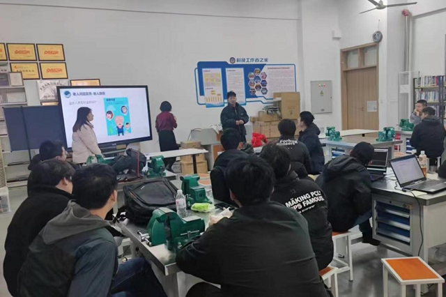 3月18日上午,首先由我校卫星专业老师黄威介绍此次培训的背景、目的,以及整体的课程学习规划。接着由来自张华娣老师以当前老龄化现状、老人走失的情况为调研背景,让同学们完成需求任务单,进行现状分析等。主要给同学们讲解了以老人防跌倒定位系统作为基于北斗应用项目的教学案例,讲解项目式课程的设计思路、教学方式。