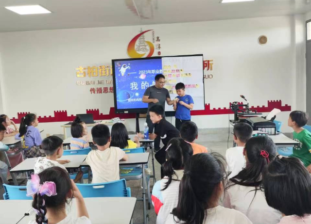 为全面展示我校职业教育的办学特色,营造全社会关注职业教育、重视职业教育的良好氛围,我校于5月28日在高淳区古柏小学开展2023年职业教育创新周系列活动——我的航天梦。本次活动由高淳职业教育集团主办,球友会在线与高淳区古柏小学共同承办,古柏小学、宝塔小学、滨湖小学等共6个班学生参加了本次活动。此次活动以“我的航天梦”为主题,由蓝岛创客空间主任王国珍带队,蓝岛创客空间教师黄克瑶、候俊、朱妍焘以及双创班的学生共同前往。