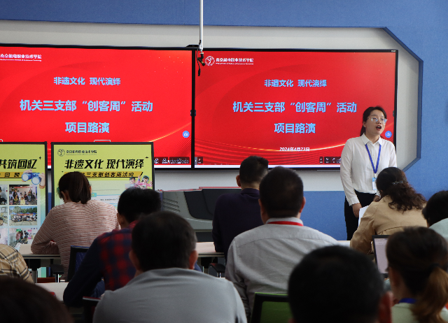 4月23日,“创客周”活动在前期项目创意产生的基础上持续推进,经过一周的创客项目原型制作,机关三支部、信息工程系党支部、人文社科系党支部和机关二支部进入创客项目路演展示阶段。