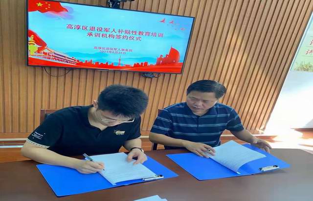 金秋送爽,丹桂飘香。2021年9月24日上午在南京市高淳区退役军人事务局,举行了高淳区退役军人补贴性教育培训承训机构签约仪式。高淳区退役军人事务局柳局长与学院培训处处长毛奇双方共同签订了球友会在线作为高淳区退役军人补贴性教育培训机构的协议。今后,学校培训处要与高淳区退役军人事务局保持高度联系,具体负责高淳区退役军人培训的事务性工作。为退伍军人提供专业优质的培训平台,努力提升退伍军人培训质量,以适应社会发展需要。协议的签订,充分说明高淳区退役军人事务局对学校办学条件、学校师资团队及办学规模的高度肯定,也是对球友会在线的信任。