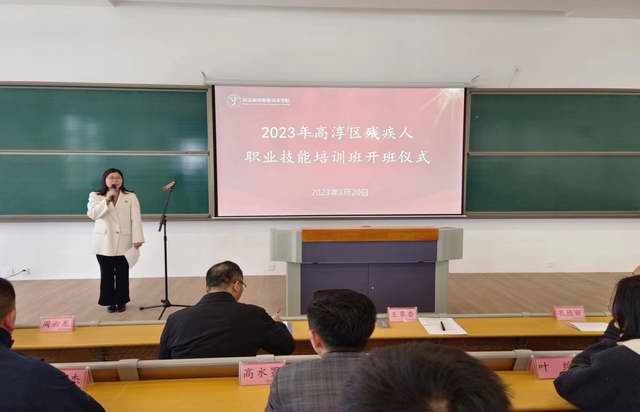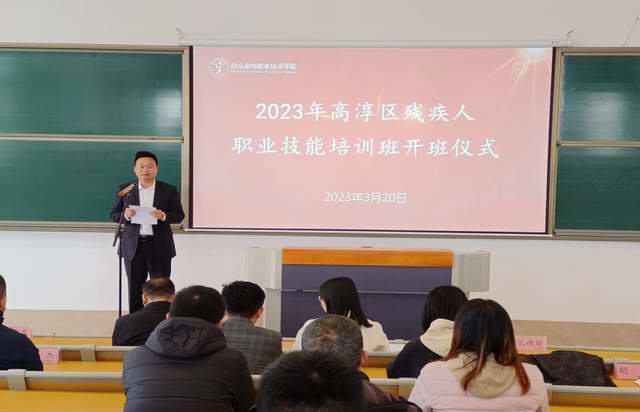 为提升高淳区残疾人的技能水平,推动残疾人事业持续、健康发展。3月20日上午,2023年高淳区残疾人职业技能培训班开班仪式在学院顺利举行。高淳区残联党组书记、理事长王翠香,南京高职园管委会副主任汪春荣,学校党委委员、副院长孔德丽,机械工程系、自动化工程系、信息工程系、人文社科系、培训处等部门负责人,授课教师代表及全体残疾人学员参加了本次开班仪式,仪式由学校继续教育学院副院长兼培训处副处长周云龙主持。