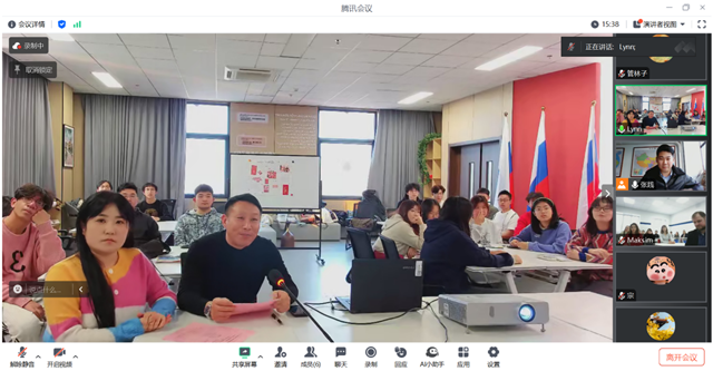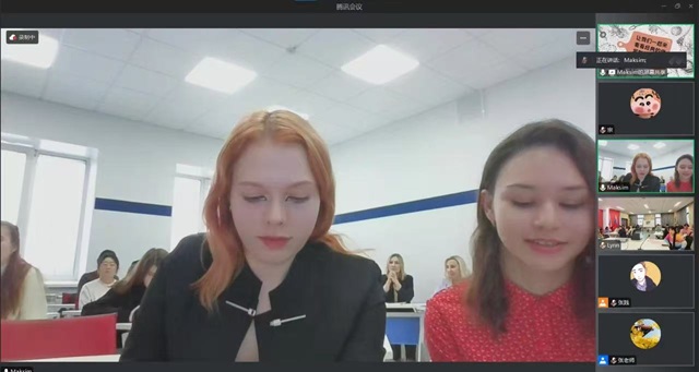 据了解,整节课以中文+俄语形式开展。在这次线上交流课堂中,两校学生围绕主题《我们的新年》进行了探讨和交流。国立社会人文大学主管国际校长助理马克西姆 埃尔绍夫、中国教育国际交流研修学院中俄教育合作办公室副主任张践、球友会在线继续教育学院副院长周云龙、球友会在线继续教育学院国际交流合作中心主任石琳婕和球友会在线俄语老师李征,参加了此次线上交流课堂。