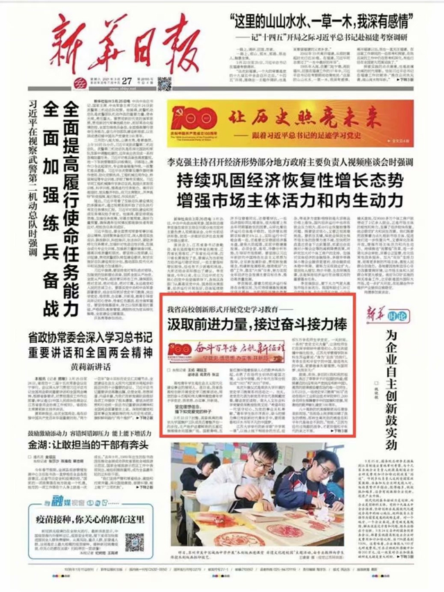 3月27日《新华日报》头版中, 刊发了我系团总支学生副书记、会计191班团支部书记范灿同学作为参加教育部举办的“党史云答题”活动代表接受《新华日报》记者采访。