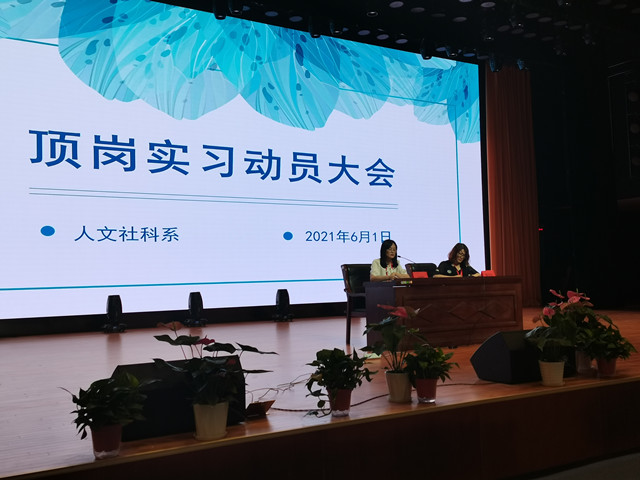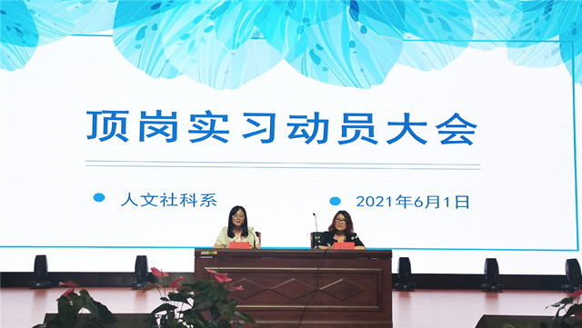 2021年6月1日,中午12:30,人文社科系于报告厅召开2022届顶岗实习学生动员大会,人文社科系主任曹安林、党支部副书记叶绘、2022届人文社科系全体学生、及辅导人员参与此次会议。大会遵循球友会在线《顶岗实习管理办法》的要求,旨在保障2022届毕业生顶岗实习工作的顺利进行。