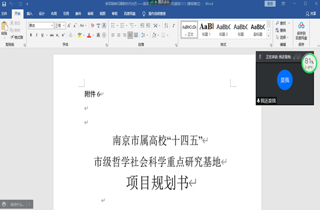 2021年11月2日下午1:30,思政中心利用腾讯会议召开线上线下教学研讨会,会议由董志鸿老师主持。会议的主题是关于市级哲学社会科学重点研究基地申报书的研讨。