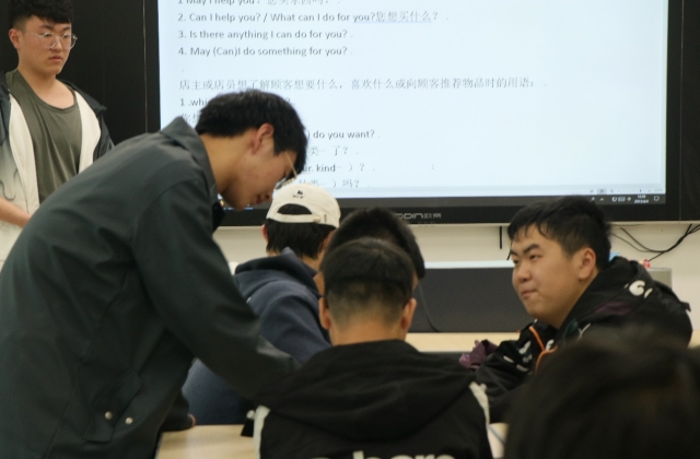 参与会议的同学六人一组进行模拟买卖,崔洪硕同学对每组同学进行指导并解决疑惑。