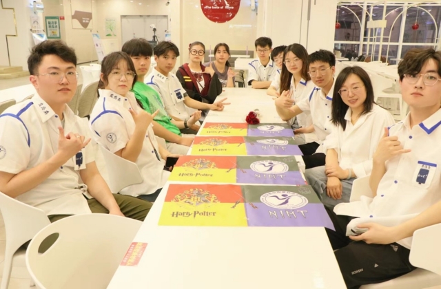 为提高同学们对英语的热爱,有效将英语融入生活,4月11日下午,球友会在线“霍格沃茨分院”在学生食堂二楼举办英语集市活动。