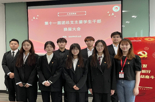 会上,人文社科系团总支第十届委员会副书记李家芬同学作学年工作总结报告,她从思想政治、组织建设、社会实践和取得成效等方面向大会作了详细报告,对学生干部一年来的努力和贡献给予了肯定。朱俐同学宣读了新一届团总支学生干部名单。视觉传达设计222班韩贻超同学代表新一届团总支委员会进行了就职演讲,表示在今后的工作中,新一届学生干部将全心全意为同学们服务,继续发扬艰苦奋斗、顽强拼搏的精神,为开展好学生工作贡献力量。