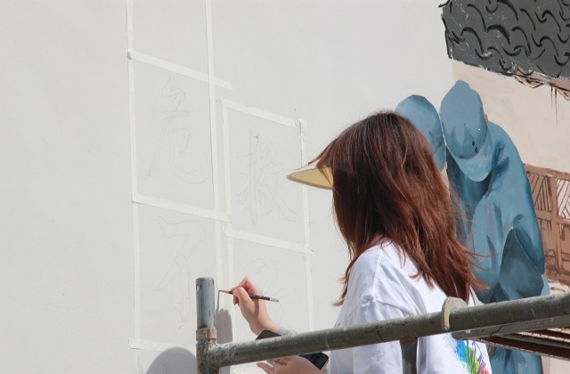 每天,实践团队踏着朝露,伴着晚霞,青春洋溢、活力四射,全身心投入墙绘创作。在团队老师杨辰辰的指导下,从确定墙绘位置、尺幅,到构图上色、调整细节、再到添加文字标语、刷墙漆,队员们分工明确,团结一致,充分发挥专业特长,坚持在烈日下工作,克服了天气、蚊虫叮咬、技术等多种难题,一勾一点、一笔一画,以白墙为画卷,为村庄增添了一抹靓丽的色彩。艺术作品以群众喜闻乐见的形式跃然“墙”上,既将艺术融入当地生活,又彰显出了新时代乡村文化的时代内涵,路过的人们无不驻足欣赏,赞叹不已。