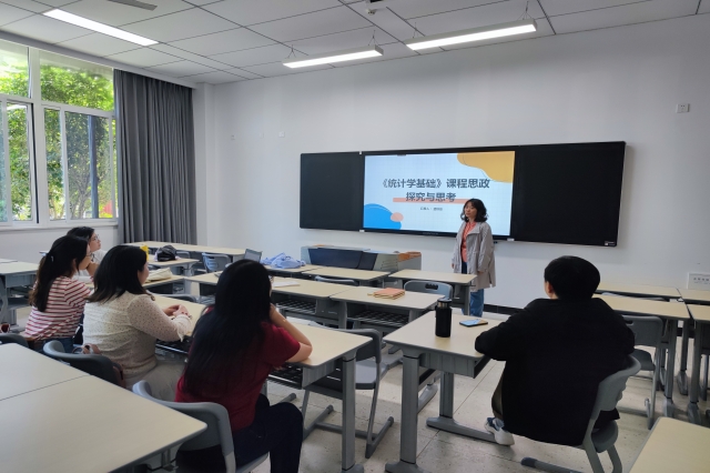 孟秋彤老师首先对《统计学基础》这门课程进行了介绍,并指出了该门课程的课程思政目标,是希望同学们通过本门课程的学习,形成实事求是的科学精神与学习态度,具备运用统计学分析方法解决实际问题的能力,培养学生理性思维,对事物和现象具有高瞻远瞩的洞察力。紧接着,她重点强调了《统计学基础》课程思政的实施过程。她认为在实施过程中应该以学生为中心,注重学生的主观能动性,做到教、学、做的统一,真正实现对学生的价值塑造,达成思政育人的目标。此外,她还对贯彻课程思政的路径进行了总结分析。