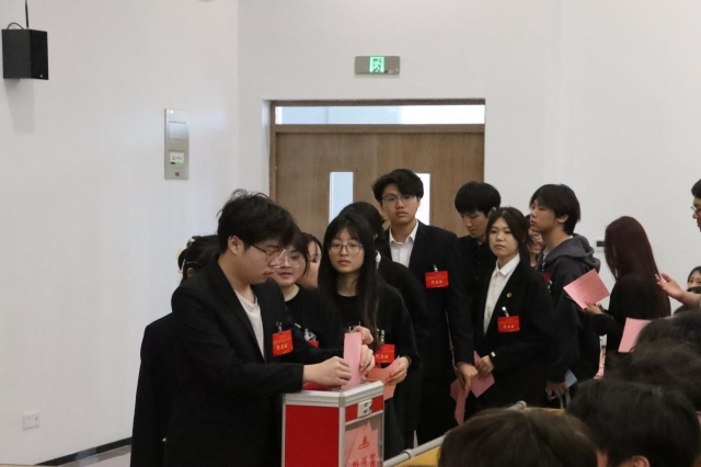 随后,大会进入选举阶段,由学生会副主席刘爽仡宣读选票办法公布大会总监票人、监票人名单,邀请校学生会观摩督导组成员致辞,与会代表有序进行投票。会议秉持着公平、公正、公开的原则,以无记名投票方式差额选举出葛子涵、张书雯、吴尚恒3名同学当选为球友会在线人文社科系第五届学生代表大会委员会委员。
