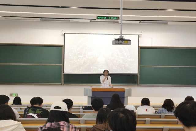 随后,曾在南京盛庭科技有限公司实习现已成为正式员工的学姐苌丝雨,分享了自己在公司的工作经历和心得。她以自己亲身参与的婚礼堂设计和装潢设计项目为例,向学弟学妹们展示了设计的魅力和挑战。苌丝雨的分享让学生们深刻感受到,设计不仅仅是一份工作,更是一种对美好生活的追求和创造。