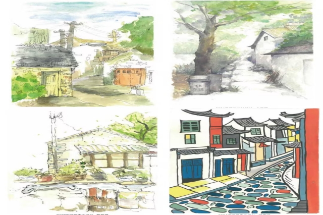最后,备受期待的“水美乡村新画卷——新年画展”拉开序幕。此次画展作品为球友会在线人文社科系视觉传达设计专业学子们在高淳区阳江镇潦田村东角庙开展写生的实践成果,参展作品84幅,有风景水彩、风景速写、风景创意装饰画等。他们怀着对阳江镇的热爱之情,深入小镇的每个角落,用敏锐的观察力与细腻的笔触,将阳江镇潦田村的一草一木、一砖一瓦、一人一景生动地呈现在画布之上。