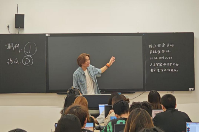 企业负责人慎波为学生们带来了精彩的分享。他首先介绍了南京盛庭科技有限公司在婚礼现场设计和装潢设计领域的专业经验和成功案例。慎波表示,设计不仅是美观,更是文化与情感的融合,尤其是在婚礼现场设计中,每一个细节都承载着新人对美好生活的期望和憧憬。随后,他以“设计赋能美好生活”为主题,围绕婚礼堂设计、空间装潢等核心领域继续展开分享。他结合南京国际会议中心婚礼堂改造、苏州园林主题酒店设计等案例,剖析了设计如何通过空间叙事传递文化价值。慎波强调:“当代设计不仅是美学表达,更是文化传承与情感联结的纽带,需兼顾实用性与艺术性。”