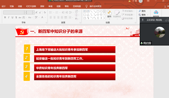 紧接着,思政中心赵姗姗、胡飞霞、卢璇等老师分别向大家进行了铁军精神相关课程汇报。在汇报中,大家边听边讨论,并形成了修改意见。一、关于新四军医疗卫生工作,可以增加引进一流医务工作者与我军优待医务人员的内容;二、关于知识分子统战工作,增加新四军为新中国建设培养了一批经济、文化、医疗卫生高级人才;三、关于华侨对于新四军的支持部分,目录内容要凝练。