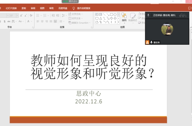 2022126日晚上,思政中心召开线上教研活动,教研主题是“教师如何呈现良好的视觉形象和听觉形象?”,会议由赵姗姗老师主持。