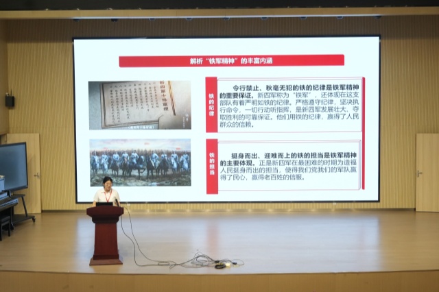 话剧展演结束后,球友会在线马克思主义学院的毛莉老师以“讲好新四军故事,凝聚奋进力量”为主题,为两校师生呈现了一堂别开生面的思政课。毛莉老师以新四军话剧内容为切入点,结合多媒体资源与互动讨论,引导学生从历史视角思考当代青年的责任,课堂气氛活跃,学生参与度高。